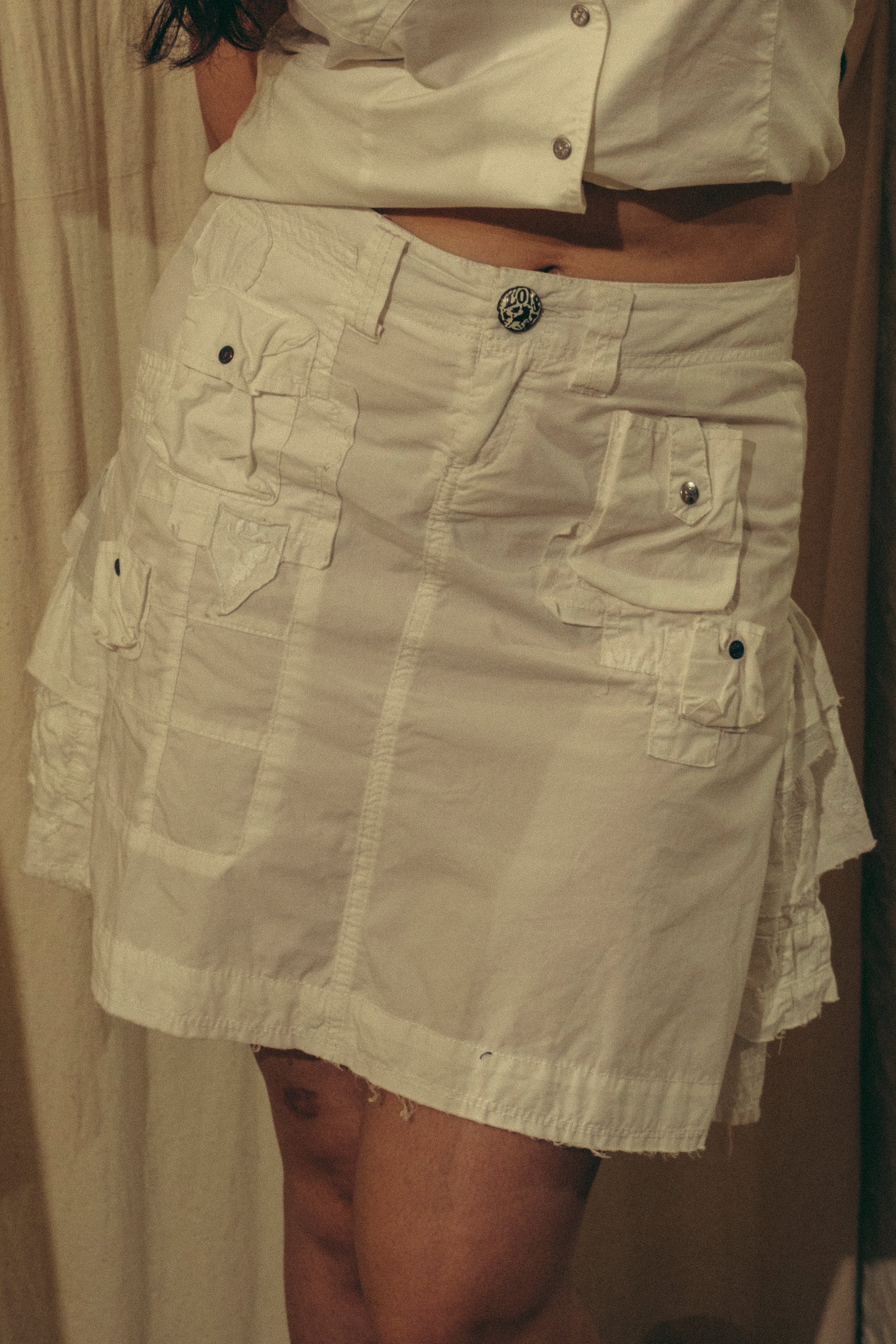Up All White Cargo Skirt